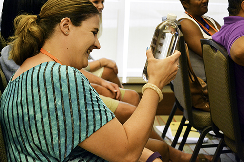 Third grade honors teacher Tschiggfrie was inspired by the Cartesian diver activity in Sparks’ session. “It was fun, and I kept thinking, ‘What a great way to incorporate Fun Friday for my kids, where you give them the materials and go, ‘Ok, what can you create?’ or ‘Can you tell me why this does this? And what other things might we use?’ Like if we change the catsup packet to something else. What other materials would you want to try? Would jelly work?’”