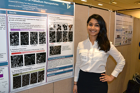 Chemistry Merit Scholar and Nano@Illinois REU participant Arzeena Sultana Ali has never met a STEM subject—or STEM program—she didn't like. Exposure to science early on piqued her interest, and from then on, she was hooked. "I always knew I wanted to do science from a very young age," Ali admits. So it was just a matter of figuring out which discipline.