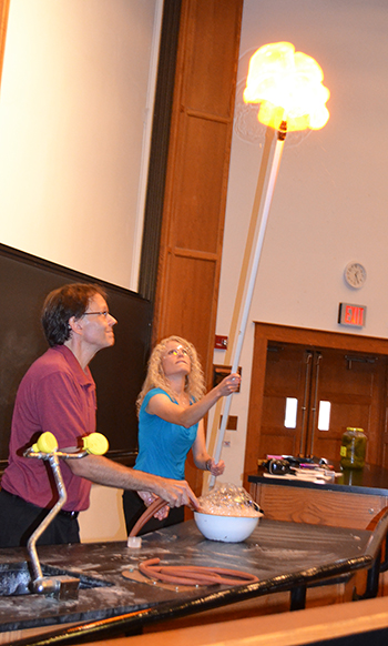However, Ali has yet to see her mentor in one of her most famous roles: a poster child too—Adams is the queen of chemistry demos…and blowing things up.