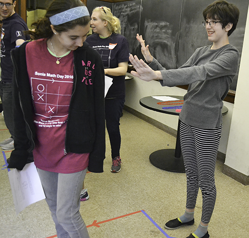 In its fourth year, Sonia Math Day is an outreach for 8th–12th grade girls held in both the fall and the spring. At the spring 2016 event on Saturday, April 23rd, nine girls spent the day with Illinois math students, playing math games and discovering that math is fun...and that it’s not just for guys.