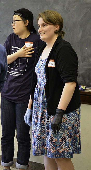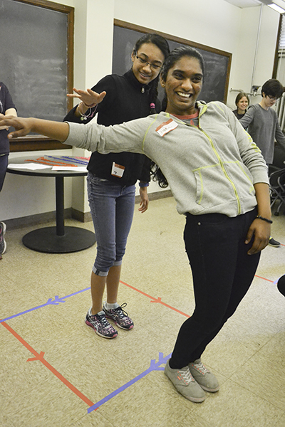 Many of the day’s activities involved math games centered around the torus (which is like a hollow doughnut). While classified as “hands-on,” the games actually involved the entire body, as girls played Simon Says, Tic Tac Toe, and Twister, all adapted to the torus.