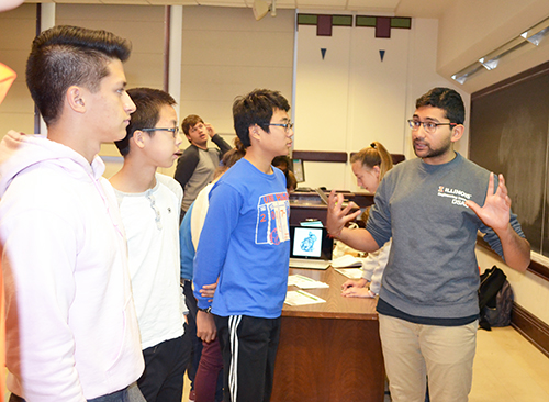 The 13 high schoolers who showed up on campus for the event discovered what Bioengineering is about through a variety of different activities and interactions. For instance, they discovered some of the careers available in the field during presentations featuring two BioE start-up companies by current or past Illinois students: Psyonic, which makes prosthetic devices for amputees, and PhantomCor, a company comprised of current Illinois engineering students that designs synthetic organ models for surgical students to practice with.
