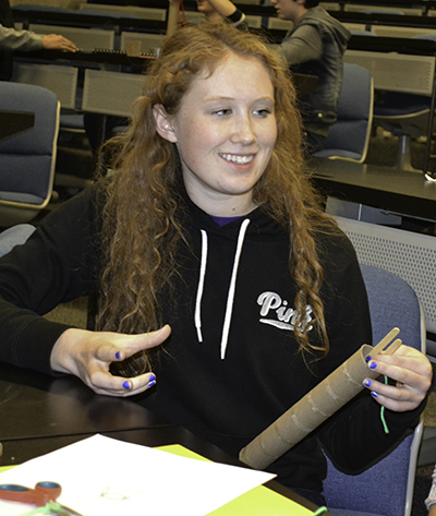 Another participant, Bianca Rubel, an eighth grader at University Laboratory High School in Urbana, came to the event because she enjoys events about engineering and science. "I love going to all of these engineering events. I've gone to a ton, and I always have a lot of fun." Does she intend to go into engineering? "I don't know, honestly," she reports. "I have no idea what I'm going to do, but engineering's definitely a possibility."