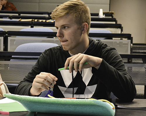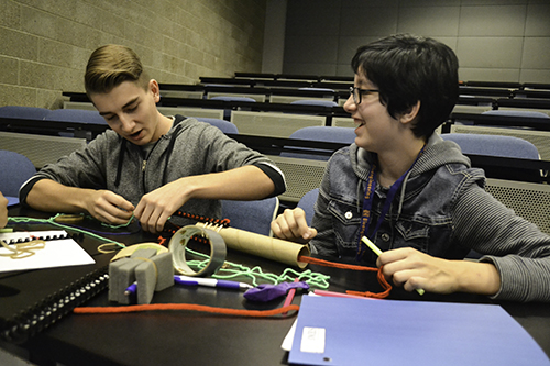 During the afternoon Design Challenge, participants teamed up to design prosthetic devices, then create prototypes using string, tape, cardboard tubes, plastic coils, etc.