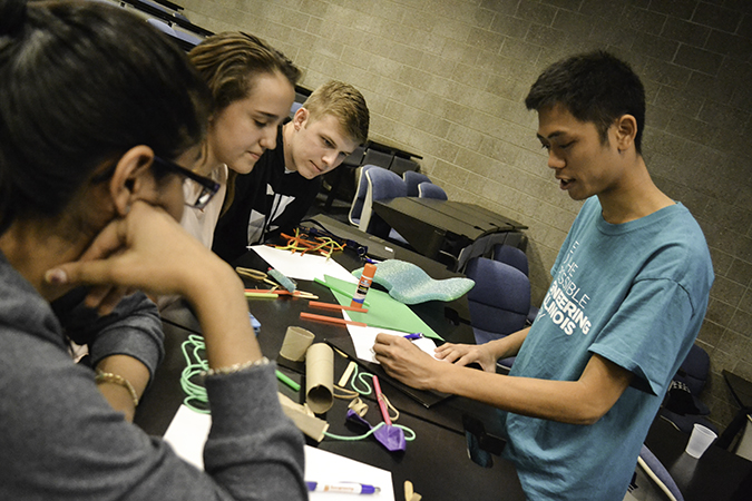What is a bioengineer? What do bioengineers do? This is what 20 high school students from around the state hoped to find out at “Bioengineer Your Impact" on Saturday, October 22, 2016. Hosted by BMES, the (Biomedical Engineering Society), a student organization for Bioengineering (BIOE) undergrads, it was the organization’s first large outreach for high school students and was designed to pique the young visitors' interest in Bioengineering. During the day, highschoolers interacted with current BIOE students as student panels shared with the younger students about their experiences in research and as interns in industry. Plus, a variety of presentations and activities helped visitors discover the breadth of bioengineering career opportunities available to them in academia, industry, and the medical fields.