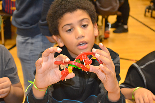 In another activity, the molecular structure of polymers was further demonstrated when kids linked paperclips together to form a chain, which they then grouped together using a magnet. According to Montoto, in this activity, the magnets represent “crosslinkers," indicating that polymers are not always single long chains, but many times singular polymer chains are interconnected with other chains chemically by these crosslinking agents to make larger, more entangled polymers. So this activity showed that principle that polymers can be linked to create new types of large polymers with changing properties.