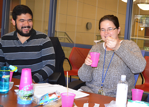 Regarding the activities, I-MRSEC researchers are being encouraged to come up with creative, hands-on activities either related to their research or at least to the material they research. Also critical to the process is a planning committee that meets regularly to develop the ideas the researchers suggest into the actual hands-on activities presented each month. The committee includes a mix of I-MRSEC, SACNAS, Urbana School District, and 4H representatives, including: Nohemi Campos (Urbana School District); Ricardo Diaz (4-H volunteer and parent); Luisana Hernandez, Leal School dual language coordinator; Joaquín Rodriguez-López; Pamela Pena Martin; Astronomy Professor Felipe Menanteau; Illinois grad student Isamar Pastrana, SACNAS’ Cena y Ciencias representative; Physics grad student Jorge Rodriguez; and Cena y Ciencias coordinator Mariela Saenz.