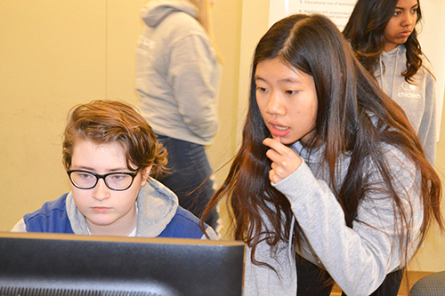Another purpose of ChicTech was to expose the girls to female role models. For instance volunteering at the event were a number of WCS members, women who are currently studying CS at Illinois. These women (along with a few male CS students) were on hand to not only help the younger students when they had issues during the workshops, but also to be available to answer the girls’ questions such as, “How did you end up in Computer Science?” "What’s it like being a woman studying CS at Illinois?” and “What are some of the different careers available to CS majors?"