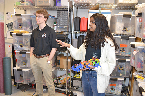 First the students had a brief tour of some of Talbot’s student work spaces, where they saw some of the many rockets ISS members had built for various competitions. Plus got to see one of the landmarks of the Talbot basement tour, the Rolls Royce rocket engine.