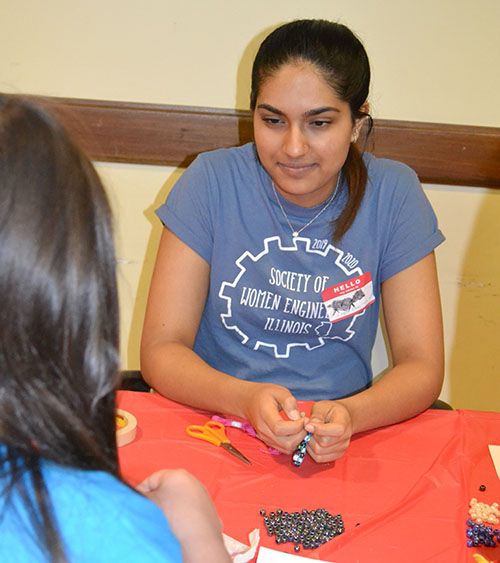 “I really enjoy interacting with the smaller—the younger age group,” says Hutter, who, over the summer, was a counselor at park district camps, which involved leading the kids in crafts and games. She admits that she never had the opportunity to do something like this with her father when she was little. "My dad and I never really interacted in doing STEM stuff, even though he's an engineer. So I would have loved this opportunity.”