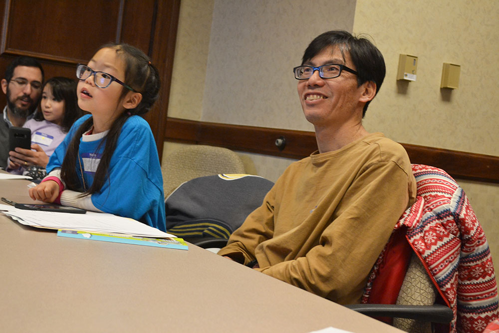 One daddy-daughter duo who had fun at the event was 7-year-old Ginny, who was there with her dad, who teaches economics. Indicating that his daughter is fascinated by robots, and that they love going to the engineering open house, which always has robots, Dad shares why he brought Ginny to Dads 4 Daughters: “And so we thought, well, another engineering activity will be a lot of fun too. And it has been." While Ginny enjoyed making her binary bracelet, which she was wearing, and had also enjoyed the invisible ink activity, she and her dad doubtless enjoyed the Kahoots activity. They had the highest score and won the competition.