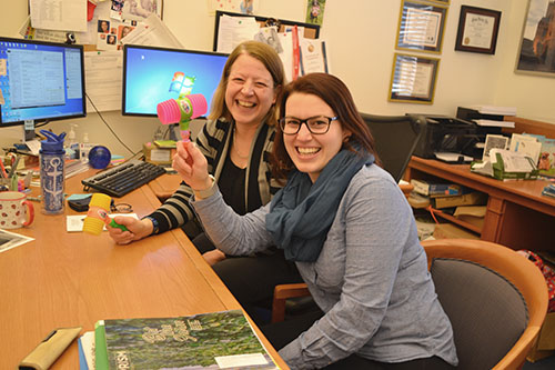 Enter “The Gavels”—all in good fun, but evidently also quite effective. Amos and co-founder and co-adviser Marie-Christine Brunet, Engineering’s Assistant Dean for Undergraduate Programs, somehow got ahold of two brightly colored gavels which they would liberally and loudly bang every time one of the offending filler words would crop up.