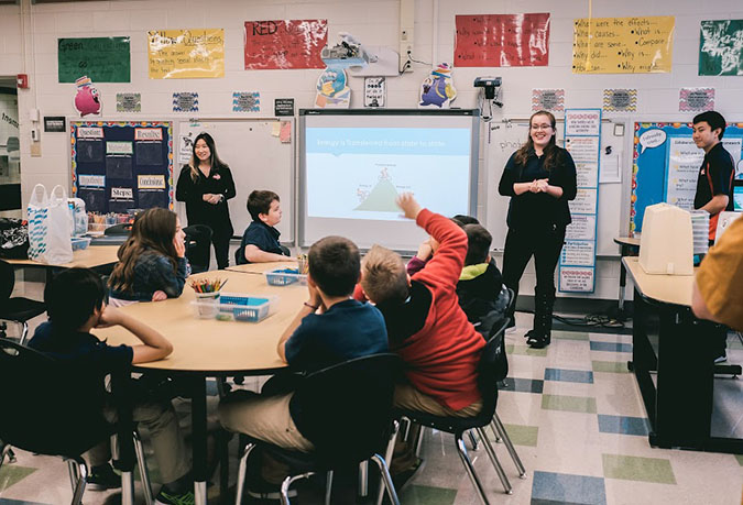 What about the College of Engineering’s EA program caused this turnaround—switching career goals from being an engineer to teaching about it? “We kept going to schools and explaining to kids these difficult concepts,” Kochanski admits, “and I just realized that I loved seeing the light turn on. Like when they did a project, and they'd get so excited because they made a car out of a balloon and cardboard.”