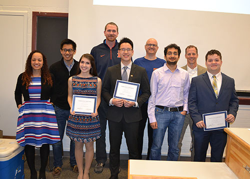 Although the competition was open to both undergraduate and graduate students in any STEM major, the four finalists were Engineering students—three undergrads and, for the first time ever, one PhD student. Winners received cash prizes ($150 for first place, $100 for second place, $50 for third).