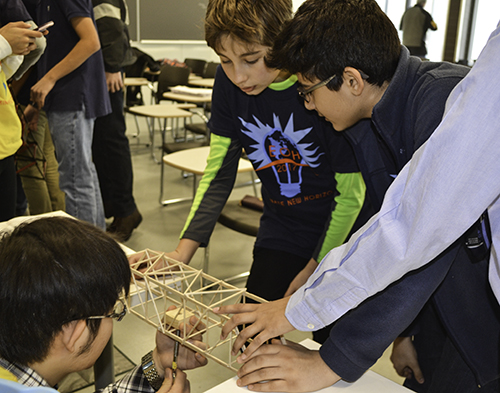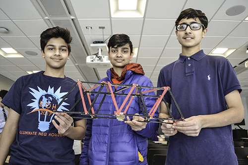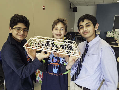 Before beginning their design, teams had to research what makes the strongest bridge. In this area, Fritz’s teams might have had a slight head start compared to other teams, because several weeks before the EOH contest, his teams had used the bridges as their project for their school’s science fair, which Fritz says involved doing background research: