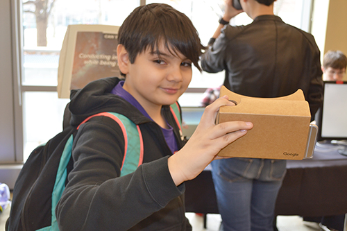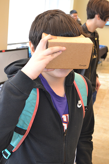 Above & Below: A young EOH visitor trys out Google Cardboard VR.Balling adds that with engineering, “Just because you study one thing, it doesn’t mean you’re pigeon-holed…you’re stuck in that forever. You can do so much with it.”