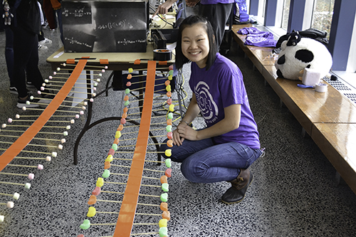 Aditi Jha at the Design For America booth at EOH.While most exhibits were strictly about engineering, other student organizations that were engineering-related took advantage of the crowds and carnival-like atmosphere to plug their work. For example, on hand to exhibit were students from Design For America (DFA), a student organization here on campus that uses the human-centered-design-process, which is often used in engineering, to create social good in our community.