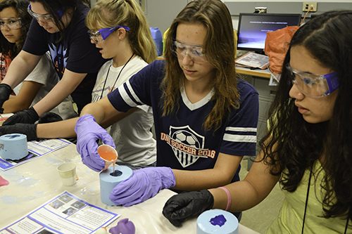 From wacky wires (memory metal) that reshape themselves when immersed in boiling water, to playing with ooy-gooey non-Newtonian fluids, to molding polymers, the 19 high school girls who participated in GLAM (Girls Learn About Materials) GAMES camp from Sunday, June 18th through Saturday, June 24th this past summer learned about a variety of materials. After hearing a mini-lecture about a given material, the girls then got to do fun, hands-on activities about the subject. Many of the participants, who were exploring materials science in order to make college/career decisions, not only learned some things about materials and what materials engineers do, they were exposed to women in materials engineering who served as role models.