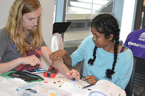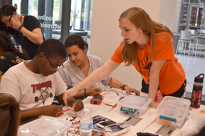 Because another important emphasis of the camp is exposing the girls to female role models in Electrical Engineering, Goddard enlisted as lab assistants a number of female ECE graduate and undergraduate students, whose goals were to pay it forward and to increase the number of women in electrical engineering.