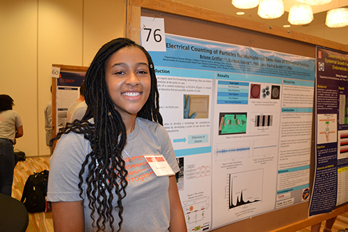 Another challenge was making the poster. While she's taken lab courses where she's had to make a poster, it's usually been a team effort. "But I've never done one all by myself, so it's been kind of tough, trying to put it all together." But she says the people in her lab have been very helpful, very hands-on.