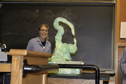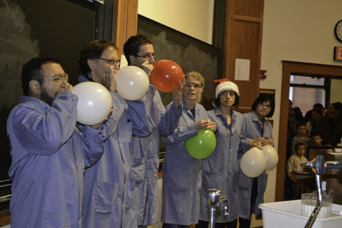 Several of the regulars have been doing the show for a number of years. For instance, Chemistry’s dynamic duo of Gretchen Adams, a lecturer and Director of the Chemistry Merit Program and Don Decoste are regulars at so many chemistry outreach events throughout the year that they could probably do them in their sleep.