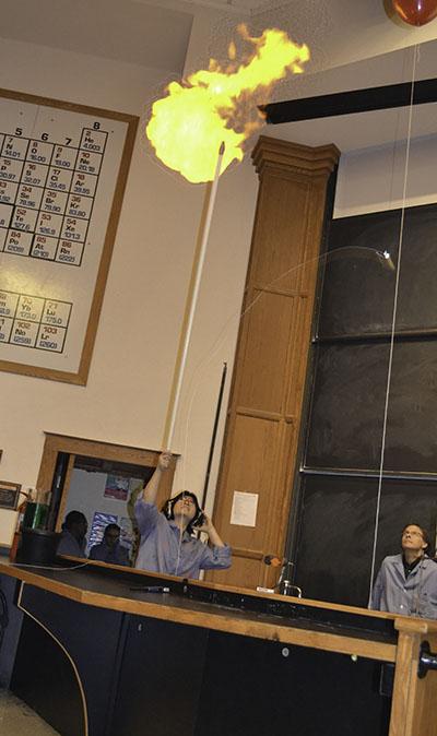 One can only imagine the criteria mentioned when enlisting chemistry instructors to perform in the show. To weed out the faint-at-heart, the job application form most likely specified: