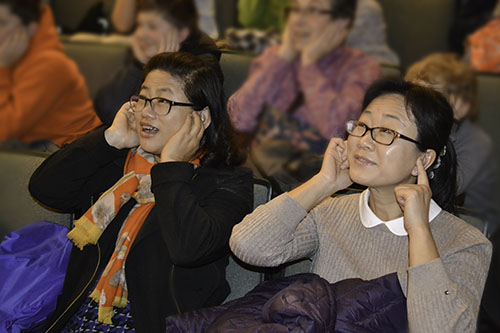 The popularity of the Holiday Magic Show was apparent even before the show started. Performers had to ask members of the audience to point out any empty seats, scoot together, even hold small children on their laps to make more room so some of those standing in the hall to watch could be seated. (To ensure crowd safety, the Fire-Marshall-established rules were that anyone in the auditorium, other than the performers, must be seated.)