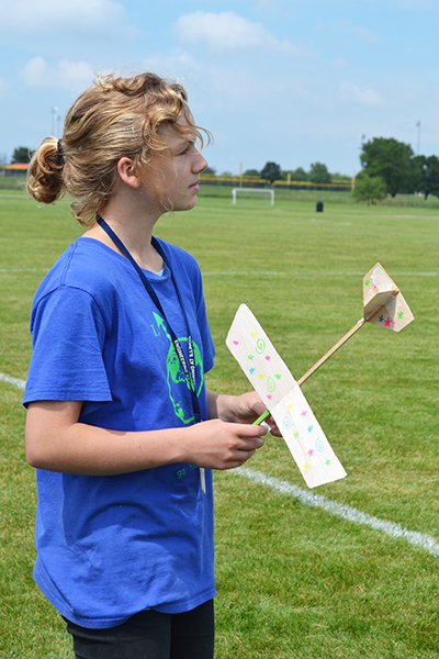 Noa Seward, a rising sophomore, indicate's she's been interested aeronautics since the end of 6th grade. Seward wants to be an aerospace engineer. She reports that her favorite thing about IAI was building the rockets and gliders. How'd her rocket do? "It ran into a car the first time," she admits. "So we'll see." Does she want to attend Illinois? "If I can get in," she says.