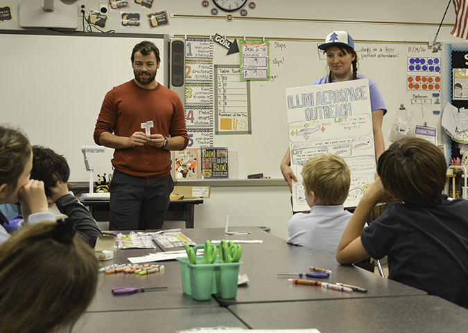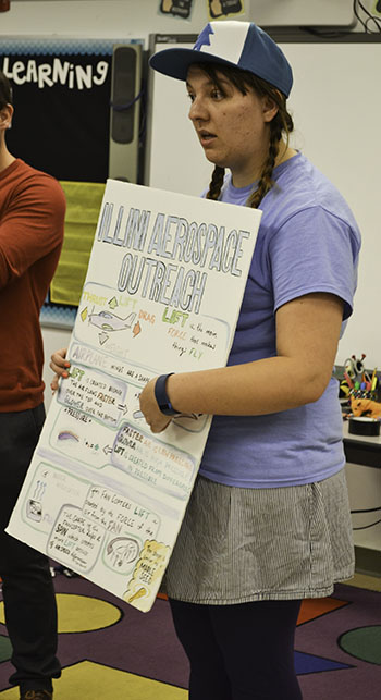 While minding the Rolls (and its little brothers—Aerospace has several smaller Rolls Royce engines too) was rewarding in terms of showing kids how cool Aerospace can be, the engine was obviously too big to cart around for show-and-tell. So the group also got involved in other kinds of outreach. For instance, IAO visits Champaign’s Orpheum Children’s Science Museum once a semester to do outreach.