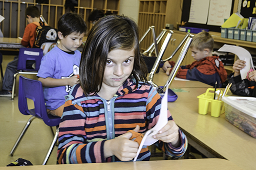 In each of the four weeks, the excited K–5th grade students did a hands-on activity during which they built a different machine (week one: a glider; week two: a helicopter; week three: a parachute; and week four: a wind turbine) while also learning a bit about the forces (thrust, lift, drag, and weight [gravity + mass]) that act upon these objects, causing them to fly—or, crash (let's face it, these are elementary students)—or in the case of the turbine, to turn and create energy.