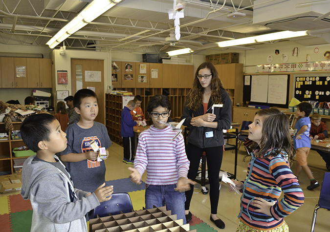 Helping to teach the students some aeronautical engineering principles was Jenna Commisso, a junior in aerospace, whose dream job is to be an astronaut. Commisso volunteered to be involved in the Yankee Ridge outreach because she was very involved in the community at her old college, and when she transferred to Illinois, she wanted to get involved in this community as well.