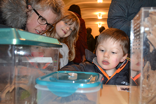 Above: A mother and her young children enjoy viewing the different insects in the petting zoo.
