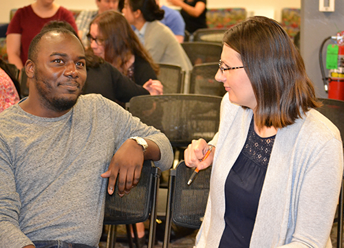 MatSE PhD student Kaitlin Tyler shares why she got involved with the workshop: “Because I am interested in trying to convey science in the easiest way possible so the most people can understand it, so this is important for me to come learn.”