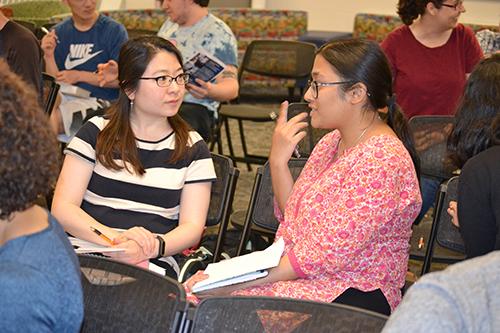 MatSE PhD student Kaitlin Tyler shares why she got involved with the workshop: “Because I am interested in trying to convey science in the easiest way possible so the most people can understand it, so this is important for me to come learn.”