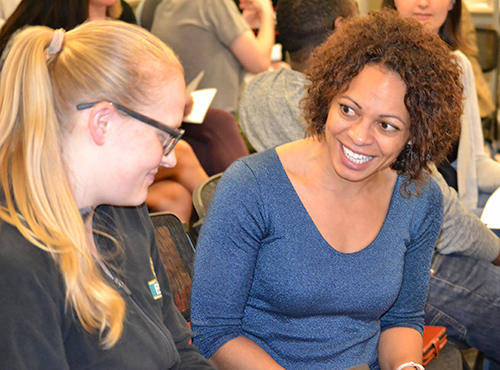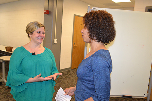 Visiting from the Alda Center to head up the workshop was Lydia Franco-Hodges, whose training was actually in theater. She admits that she was first introduced to “scientific improvisation,” as she terms it, on joining the Center several years ago. She shares her goal in the workshop: