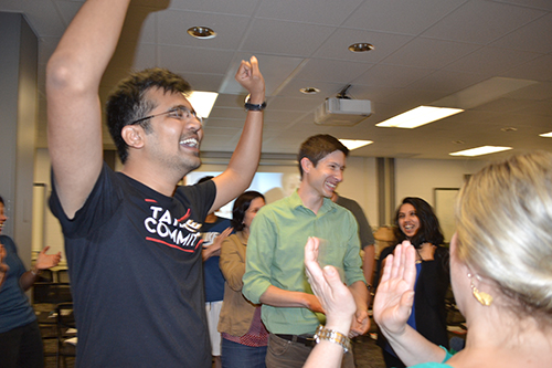 In another activity, participants played an old standard—Rock, Paper, Scissors. (You know, the game kids play to see who gets stuck with taking out the garbage for mom.) However, this version had a new twist; it was designed to encourage team-building by affirming the loser. So the audience divided up into pairs and played the first round. But instead of gloating when they'd won, the winner was to affirm the loser. And instead of the winner moving on, the losers moved on to play in the next round until the only person left was the biggest loser, except he'd actually won, and was loudly celebrated by the entire group.