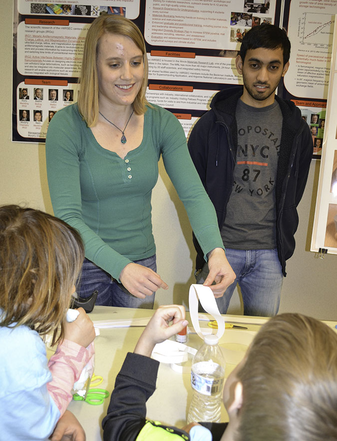 Materials Research Lab Open House. One of the Center's first outreach events involved participating in MRL’s first-ever Open House on March 9th and 10th. There, I-MRSEC-funded graduate students presented exhibits related to I-MRSEC's research emphases; one on magnetism; the other on Topology, during which visitors could make a Mobius strip.