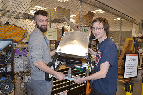 Nikolay Tzankov (left) and Christian Held (right) with one of the IRIS robots.