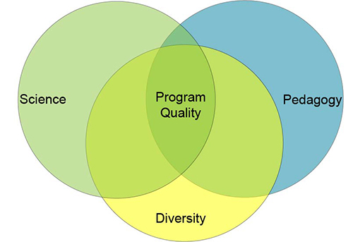 “Every program has intrinsic values,” says Tillman. “These are derived from the types of things the PI’s, program managers, and evaluators think are important. So one thing we always try to look at when we’re judging the quality of the program is ‘Does the program have high-quality science content’? ‘Does the program have high-quality pedagogy’? and ‘Is the program attuned to issues of equity and diversity’?