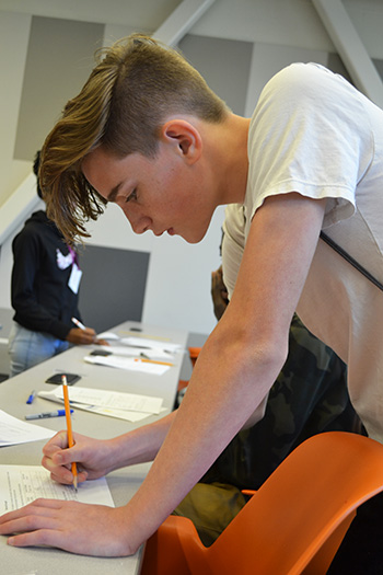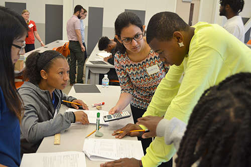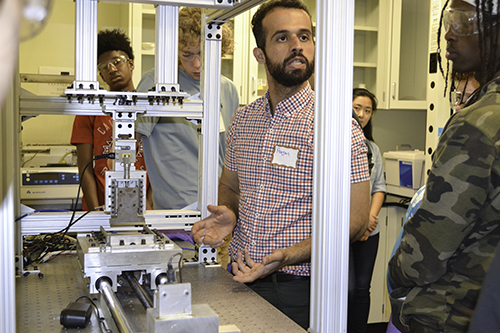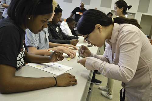 The high schoolers also learned some principles about building sturdy structures, then were challenged to see which group could build the sturdiest popsicle-stick bridge, which they tested at the end of the day.
