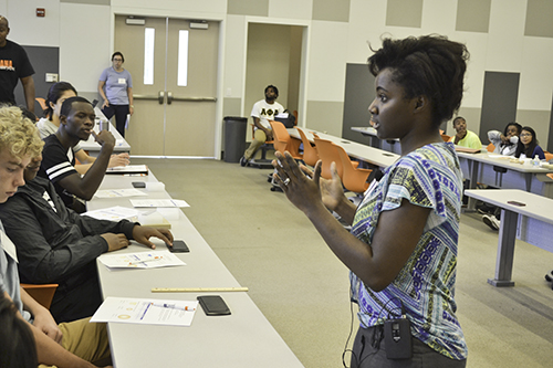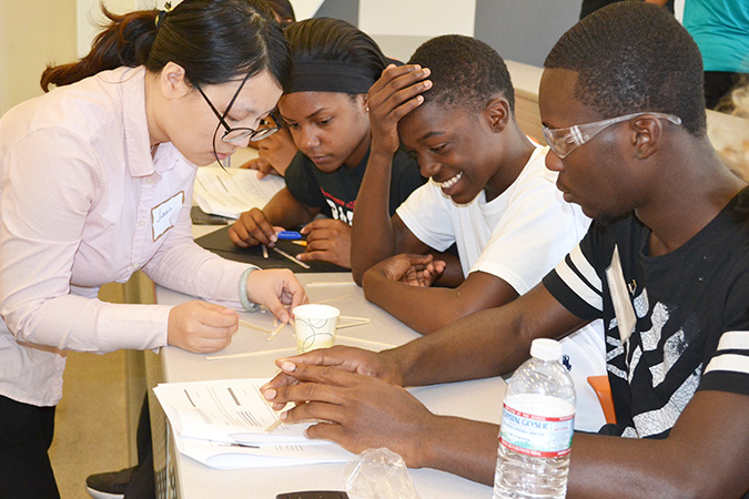 Concerned about bridges or other structures cracking? Civil & Environmental Engineering (CEE) Assistant Professor Ange-Therese Akono is. So on Wednesday, August 9, during I-STEM’s multi-disciplinary summer camp, she introduced 27 Urbana High School (UHS) students to her niche: determining the strength of various materials in order to build stronger structures. Plus, along with several hands-on activities related to Akono's Design for Toughness research philosophy, the students not only discovered what research is like, but got to interact with college students and to experience being on a college campus.