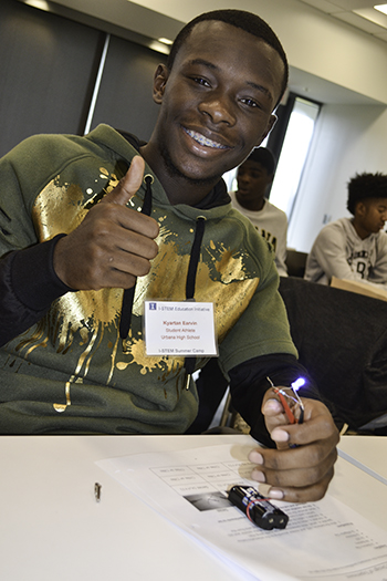 From August 7–18, twenty-seven Urbana High School (UHS) athletes, mostly underrepresented minorities, participated in the first-ever I-STEM Summer Camp. The goals of this multidisciplinary summer program were to 1) expose participants to various STEM fields so they know what their options are when choosing their career/ college path; 2) to build teamwork and lab skills in different STEM disciplines; and 3) to allow students to experience what STEM research is about. Ten different STEM departments and units on campus were each responsible for one day of activities during the two-week camp.