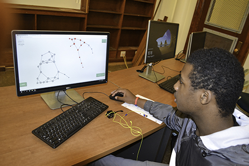 While playing VAX, UHS athlete Sergio McClain has successfully isolated the persons with the disease (the red dots) to stop the spread of the disease.So, she gave the students an exciting exercise related to real life and to her work in epidemiology (the spread of infectious diseases). In a website game, called VAX, students were given a limited number of “quarantines” (breaking a link from one person to another) to try to stop a disease from spreading. Once the disease got started, however, it spread rapidly from person to person. The students were quite engaged as they scrambled to try stop the spread of the disease—with varying degrees of success.