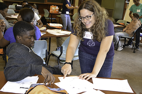 Working with the combinatorics and number theory activity were Math PhD students Colleen Robichaux and Alexi Gorman. Combinatorics focuses on the patterns between various sets of numbers and evaluates similarities and differences between different sets of numbers. Students were taught about how numbers can be diagrammed to better see patterns between different numbers. Although the theory and way of thinking was new, as the students came to understand it, they found it interesting and enjoyable.