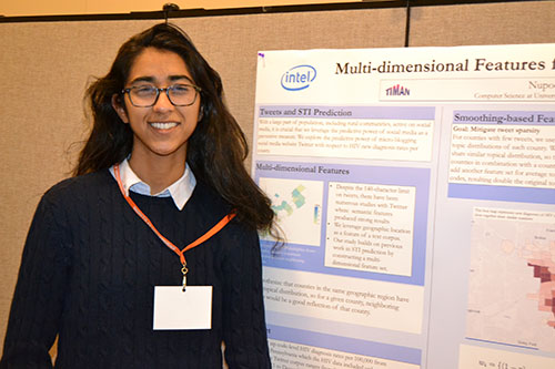 One student who reaped the benefits of another Engineering program, MUSE (Mentoring Undergraduates in Science and Engineering), as well as ISUR was Nupoor Gandhi, a sophomore in Computer Science. She met her grad student mentor at the beginning of her freshman year as a part of MUSE, and her mentor is also supervising her ISUR research project. Funded by Intel, the project seeks to leverage social media to predict outbreaks of sexually transmitted infections.