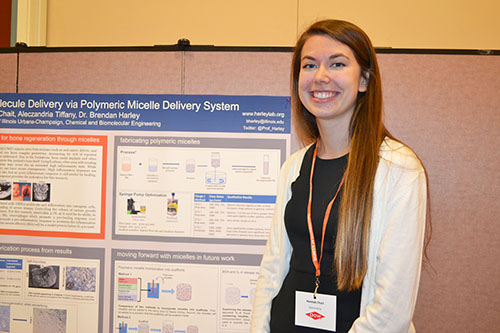 Hannah Chait with her poster at the 2018 ISUR poster session.Chait has been working in Professor Brendan Harley’s lab since she was a freshman. Regarding her current project, she says her graduate student, Aleczandria Tiffany, was key in helping write the proposal for the project.