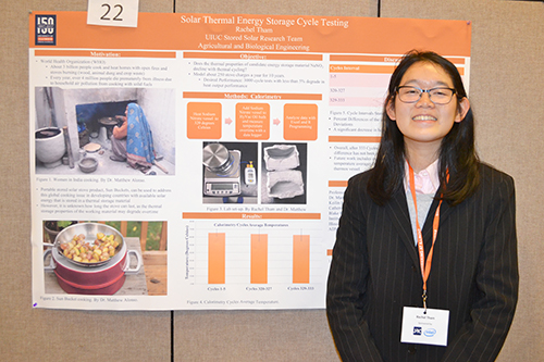 Rachel Tham, a sophomore in Agricultural and Biological Engineering, did a project testing the number of times the salt in a sun bucket could be heated and cooled to determine at what temperature the salt might not be as efficient. Tham has been involved with research since the first semester of her freshman year.