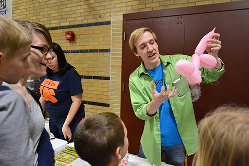 Presenting at the April 10th event were a number University student groups and staff. For example, two undergraduate student outreach groups, Physics Van and Chemistry’s REACT group, shared activities with the visitors. In addition, MechSE undergraduate student Patrick Slade was on hand to demonstrate bionic prosthetics.
