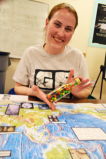 Although the Illinois graduate students might have seemed a bit less like "kids" to the youngsters who attended the event, they brought their passion for and expertise about their discipline to the table. For example, Amanda Owings, a 3rd year PhD student in the Program in Ecology, Evolution, and Conservation Biology participated in order to share about human migration. Owings, who is studying the effect European colonization had on ancient and living Native American people in Canada, indicates that she also wanted to show kids that science can be fun.