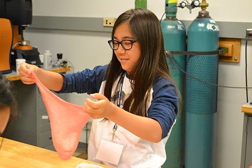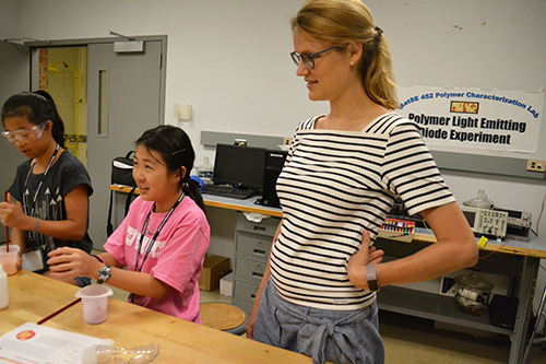 How do you get these young girls interested in the applications using materials science? One way to do that is to broaden one piece of a concept and apply it to something fun and engaging for the students. Jill Carbone, a rising junior in MatSE who also helped out with the GLAM camp, acknowledges this idea by saying: